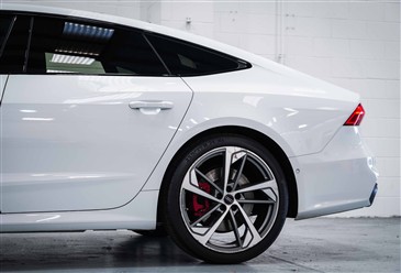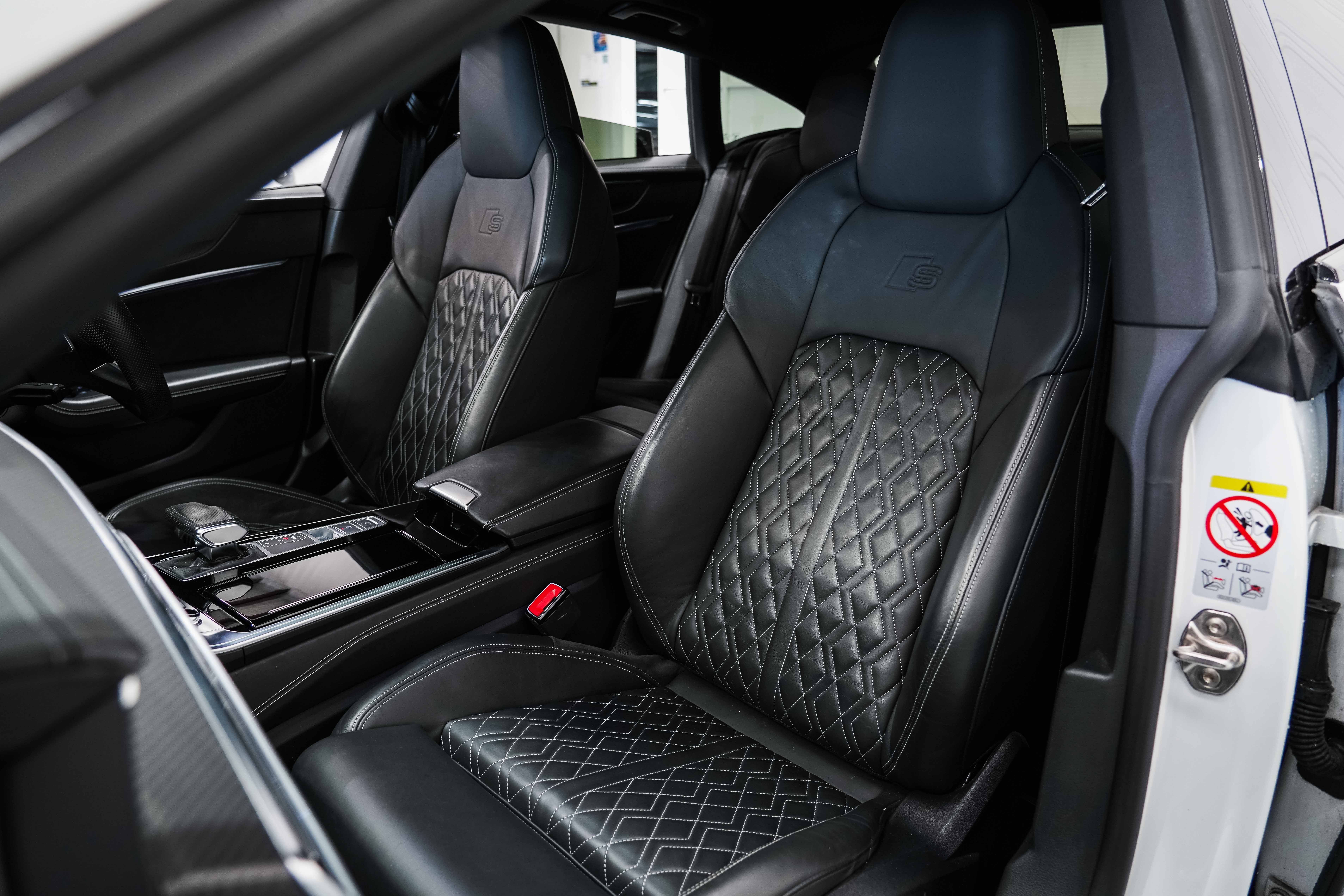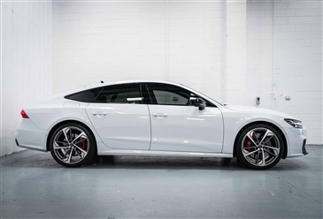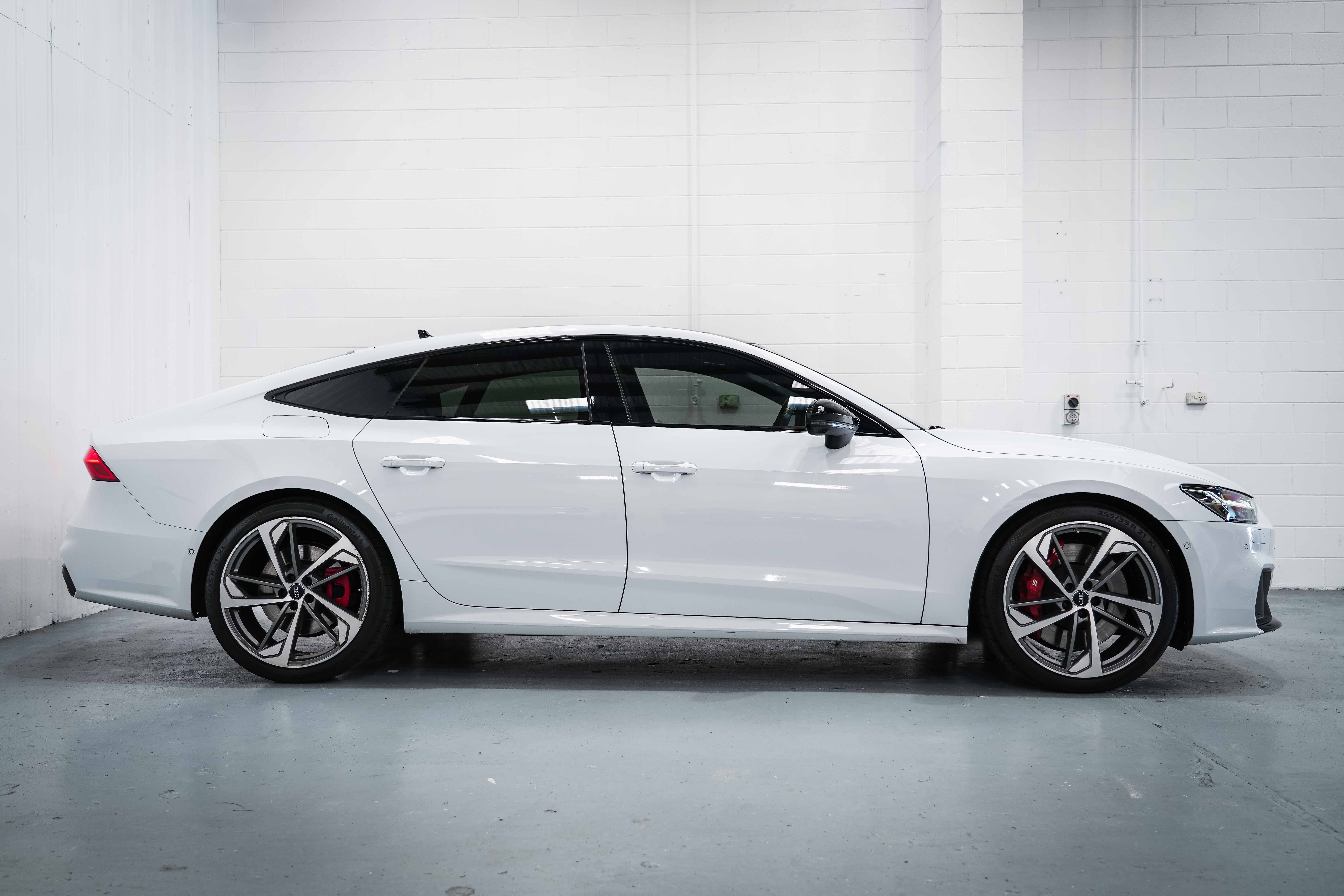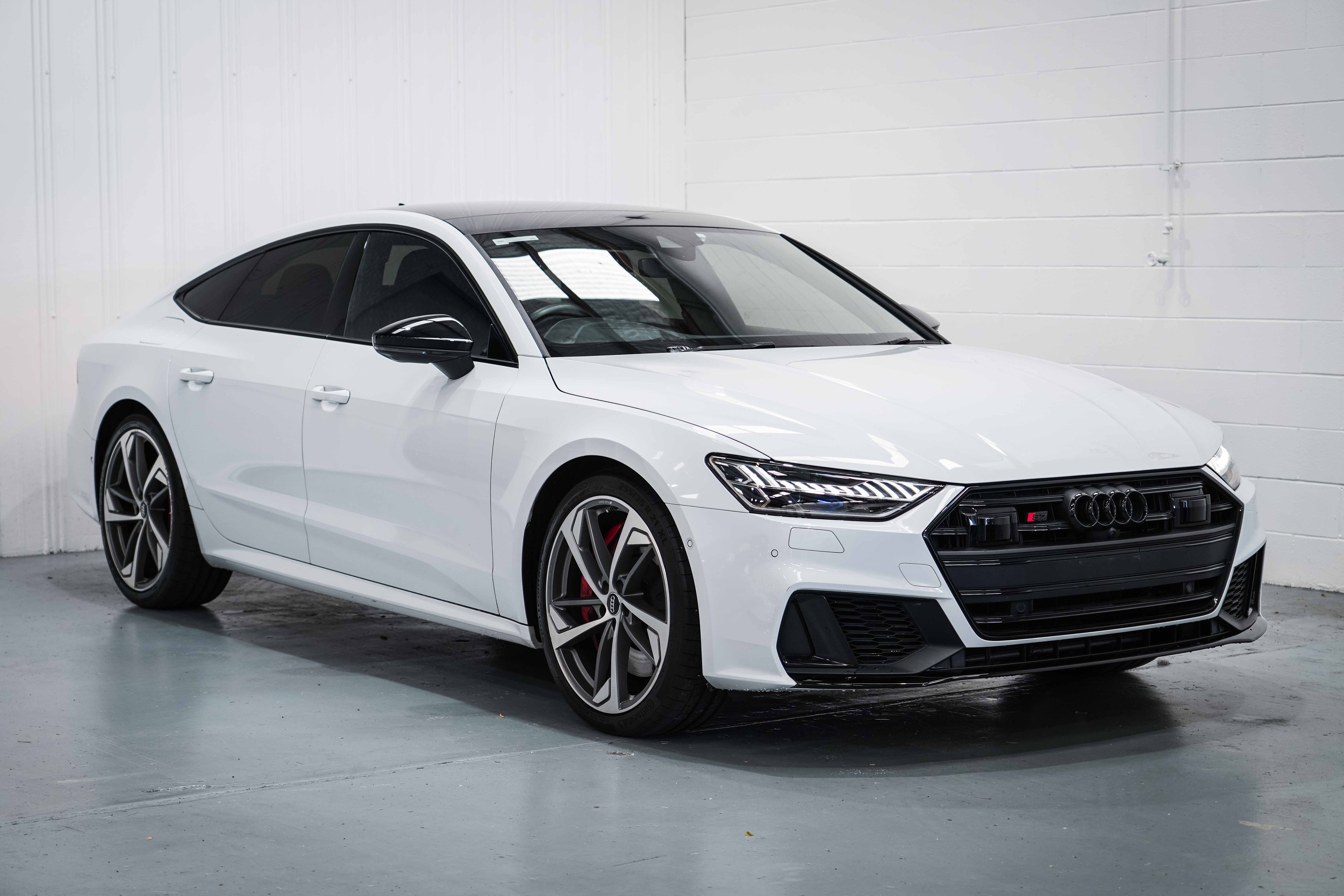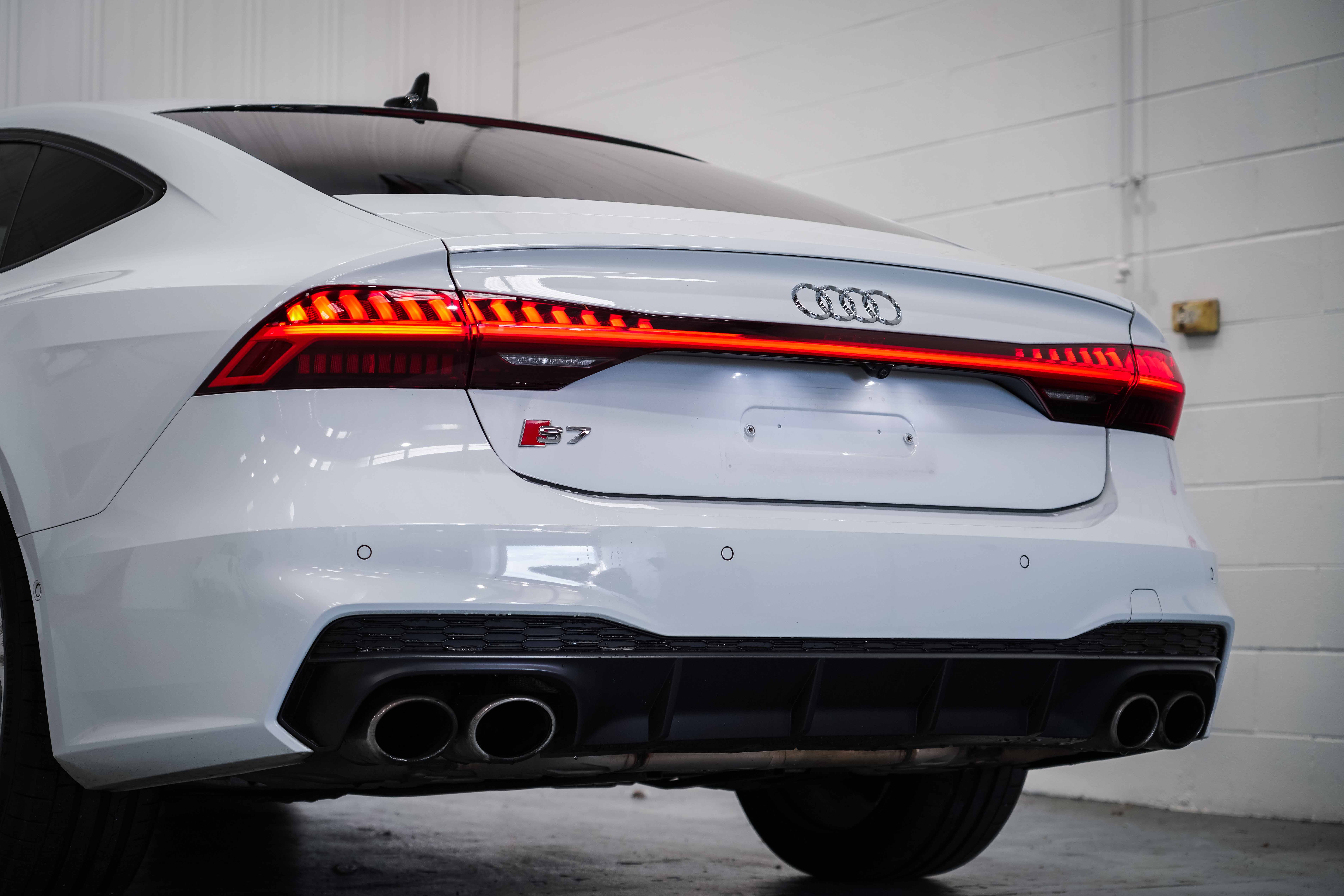 Finished in Glacier White Metallic Over Black Valcona Leather Interior, this stunning 2020 Audi S7 Sportback combines performance, technology, and sophistication in one beautifully sculpted package.